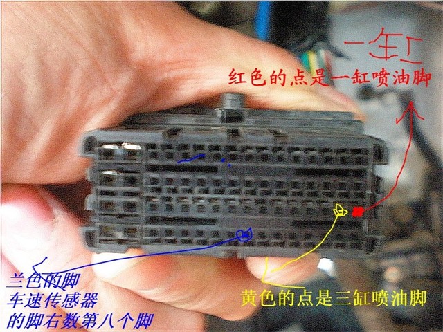 请问各位兄弟我是2代1.3的请问车速传感器到电脑的线是什么颜色的?在电脑的哪个脚,最好上个图.我想买个油耗仪又不想拆仪表盘.谢谢了.