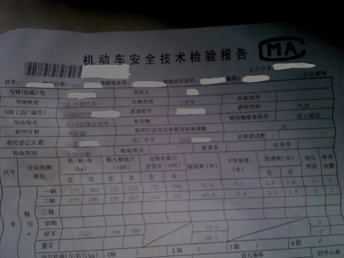 我车的检测结果上,左边是18600,右边是16800,按在用车15000的要求是达到了,不过这一项心里真的没底,一是不知那个检测仪器的标准距离应该是多少,因为我车检时比前车明显要近一些,二是我的明明只检了一个灯,出了两个灯的数据,按理说两个数据也应该相近吧,难道真的是随便填的?不过年检过了就阿弥陀佛了。