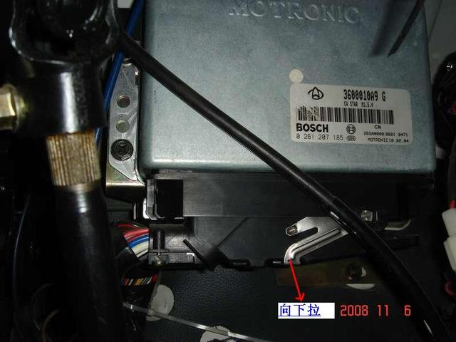 打开ecu前,要断开电瓶负极线,然后拉下ecu插头的不锈钢锁紧片,慢慢就拿下来了