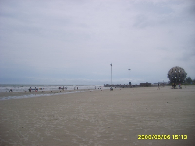 酒店马路左斜对面的白色走廊就是银滩公园入口。。再向前就是无敌海景。。现在想起来,都掉口水```