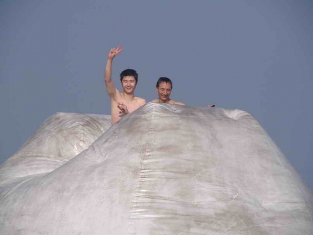 这二位同学值得称道 ,他们率先爬上了冰山。