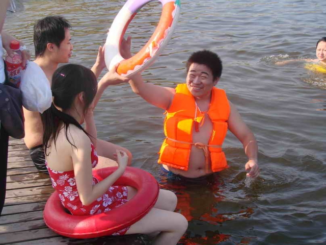 陈小胖同学的行为被美女的男友发现,第一笨甩给他一个圈:各人游泳去!