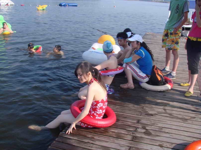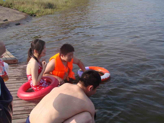 打望开始:这位美女是不知道名字,因她是第一笨带来的,按车友会名称惯例,暂叫他“母第一笨”。她坐在水边很久不敢下水,原来是她游不来泳。