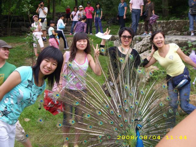到了黄果树售票点之后,来了一大群当地人。称去景区售票点买票要180一个人。他们带我们进去只要80.。。也不知道是不是真的。还好我们老大心细,出门前带了几个记者证,我也把同事的记者证借了带在身上的。。。本来只有3个证件。。。只能兑换三张免费票。但是我们在第一个登记员那里登记了三张票之后,又跑到第二个登记员那里骗了三张票。哈哈哈。。。六张。。。然后老大的女儿确实没有办法了。。。买了90元的学生票。。。7个人就浩浩荡荡进了景区。。。刚进第一个景区就看到孔雀开屏。。HOHO