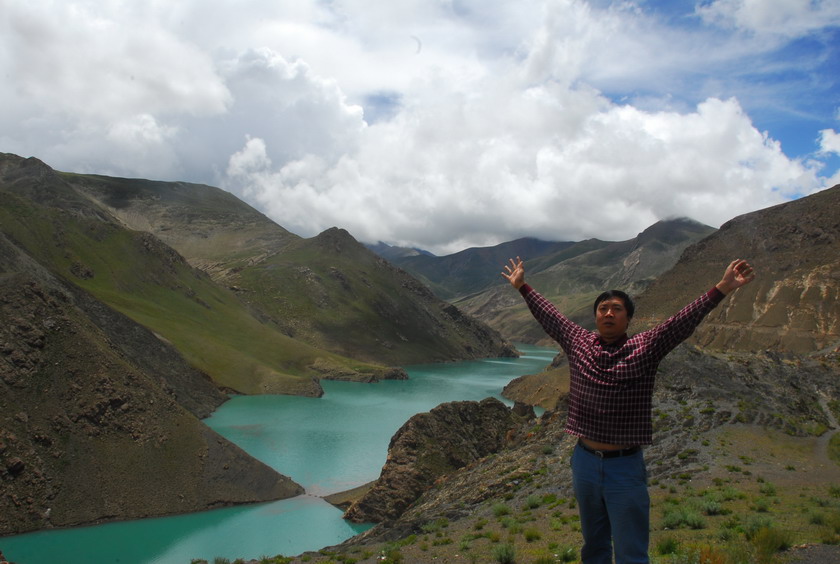 正在我为难之时,这位名叫巴桑的女孩解了大围——她是江孜师专的学生! (就是我左边戴白帽子那位)