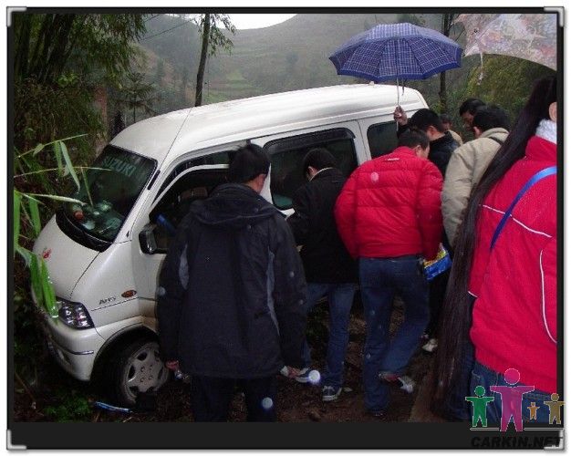 第一次开始拖车,失乐园心里比较急,挂上倒挂在猛踩油门,结果把路边一农家的水管磨破,未成功,大家又开始想办法,人多就是好办事呀,车友会老师傅也不少,最后告之失乐园同学挂空档,后面阳光驿站开车拖,前面大家一起用力推,这里说的阳光同学就是我们的大侠四了,下雨路面太滑,第一次打燃火猛踩油路结果后驱轮胎一直打滑,呵呵,不怕小绵羊这种FB份子这时候还真的起到了作用,做上阳光的车,加重后排,没问题,可以在一次开始.阳光大侠在次打燃火,听那发动机声音,起码也是4000转左右了,还要小心后面,技术不错呀,没有大侠的支持车车是出来不到的哈,感谢阳光大侠,当然还有那么多推车,搬石头,想办法的车友.