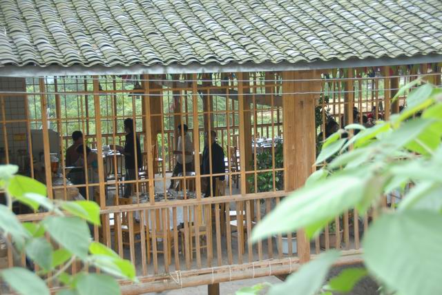 经过多次挑选,我们确定在这家农家乐吃饭。古式建筑,还可以。