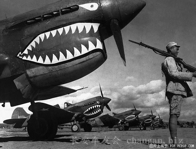1942年,中国士兵在守卫着“飞虎队”的飞机